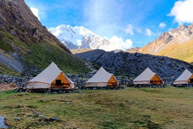 Pasarás una noche en glamping cerca del Salkantay, otra en cabañas andinas en Collpapampa y una en hotel 3 estrellas en Aguas Calientes.
