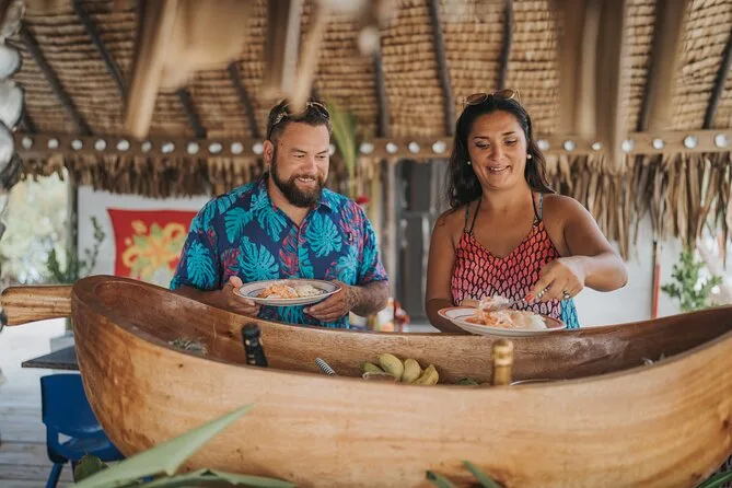 Un buffet típico polinesio preparado por un chef local, con pescado crudo y leche de coco fresca hecha al momento.