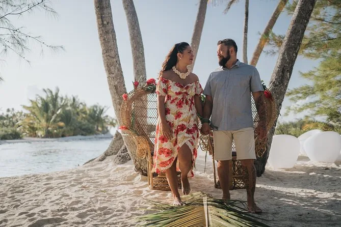 Disfruta un día completo en tu motu privado en la laguna de Bora Bora — recibe la bienvenida con música y cócteles, prueba comida polinesia fresca con los pies en el agua, descansa bajo las palmeras y haz snorkel entre peces tropicales. Un momento de paz y autenticidad isleña que recordarás siempre.