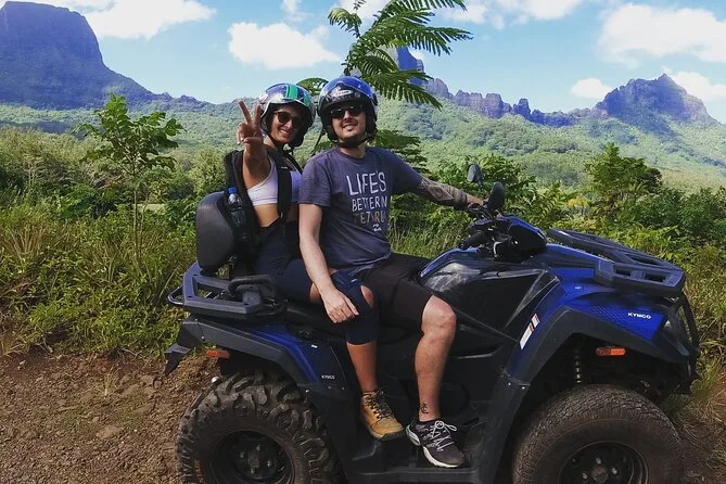 Recorre las bahías de Moorea en jet ski con un guía local, nada entre rayas y tiburones (si te atreves), y luego cambia a un paseo en ATV por campos de piña hasta Magic Mountain para disfrutar de vistas salvajes. Risas, historias auténticas y momentos que no olvidarás.