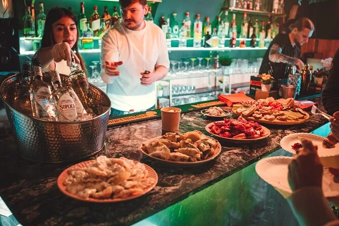 Recorrerás el Casco Antiguo y Kazimierz de Cracovia con un guía local, probando más de una docena de platos polacos — desde snacks callejeros hasta guisos contundentes — además de degustaciones de vodka y cerveza artesanal. Prepárate para risas, historias que se quedan y la sensación de entrar en la cocina de Cracovia.