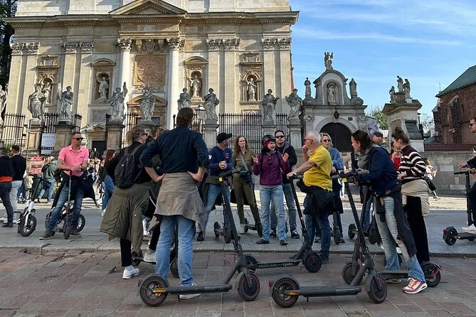 Recorre en scooter eléctrico el casco antiguo y el barrio judío de Kraków con un guía local que conoce cada rincón y leyenda. Vive momentos únicos en puertas históricas, escucha historias junto al castillo y disfruta snacks típicos en plazas llenas de vida — con sorpresas que recordarás mucho después.
