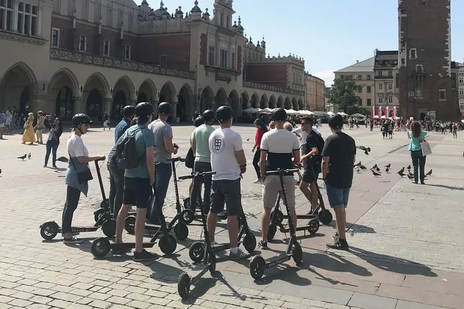 Tu día incluye casco para seguridad, guantes cálidos si hace frío, guía local experto por los barrios y monumentos de Kraków, y un snack tradicional obwarzanek antes de regresar al punto de inicio.