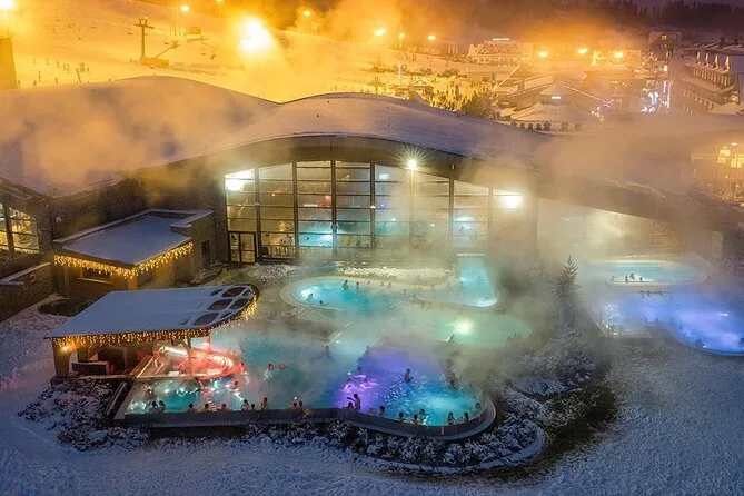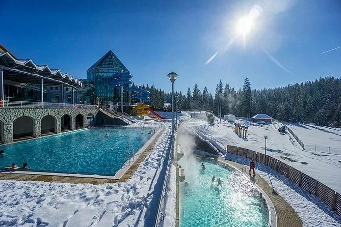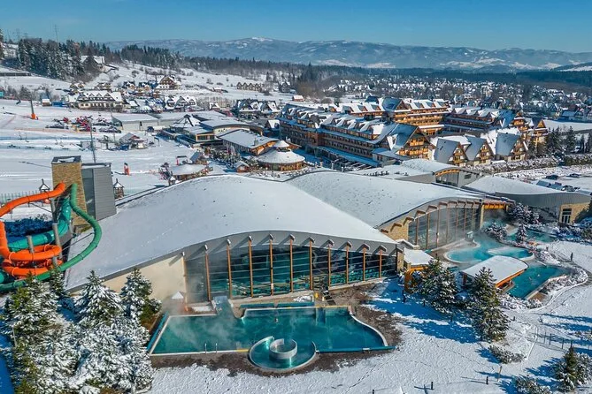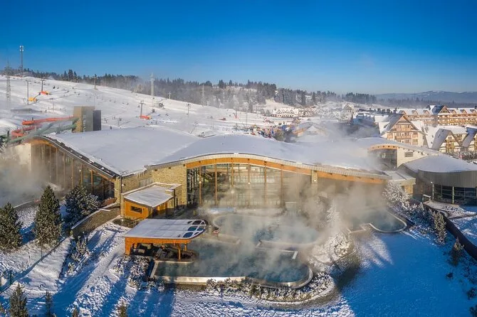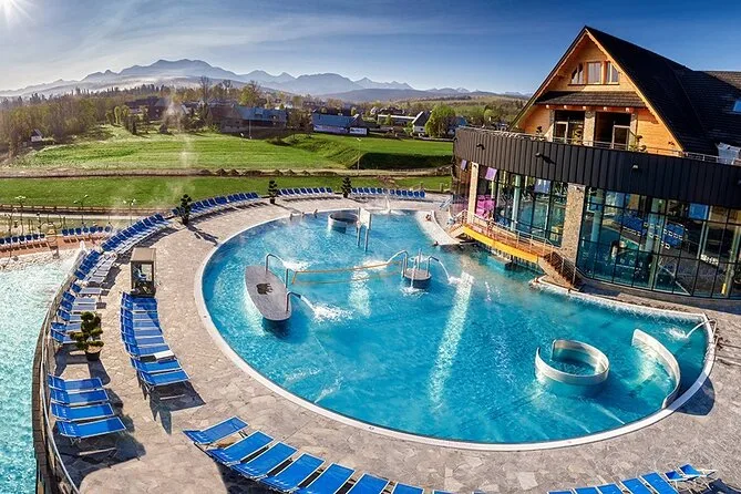 El día incluye recogida en tu hotel de Kraków, transporte ida y vuelta en minibús o coche, entradas a las aguas termales de Chochołów (con acceso a piscinas y toboganes) y al funicular de la montaña Gubałówka, además de una degustación de queso Oscypek tradicional acompañado de vodka polaco en la cabaña de un pastor, para regresar relajado al final del día.
