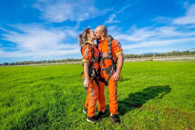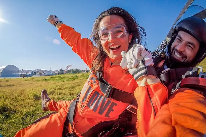Tu día incluye todo el equipo necesario para el salto: traje y gafas, una breve orientación con tu instructor en el aeródromo de Portimão, el salto en tándem desde 15,000 pies sobre la costa del Algarve y un certificado conmemorativo tras aterrizar — además de gafas de sol si añades vídeo a tu reserva.