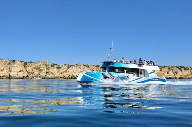 Tu día incluye comentarios en vivo de guías locales mientras navegas junto a playas doradas y acantilados impresionantes cerca de Lagos, avistamiento de delfines con garantía o voucher gratis si no aparecen, acceso a un parque acuático inflable a bordo, snacks deliciosos de cortesía para mantenerte con energía, y asientos cómodos con sombra para relajarte entre momentos inolvidables antes de regresar a tierra.