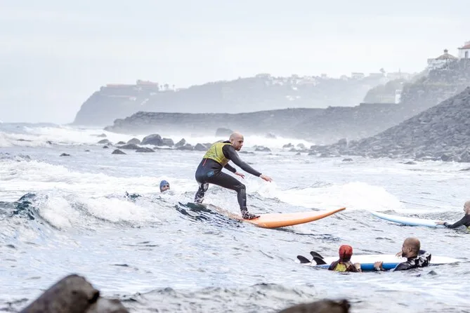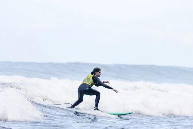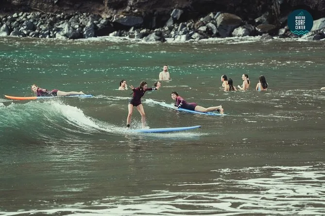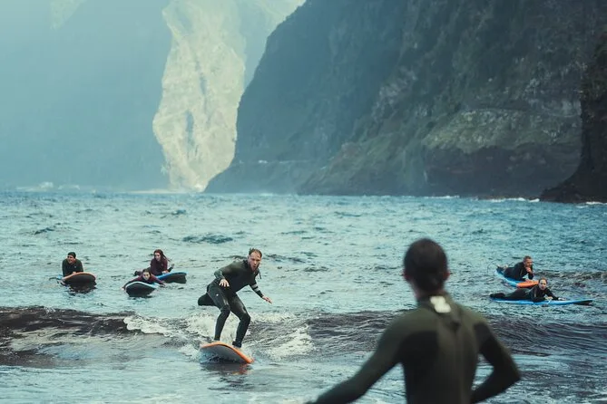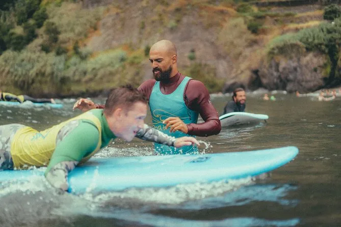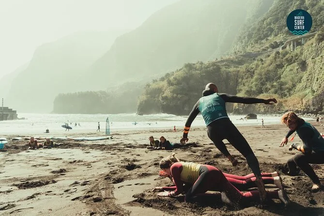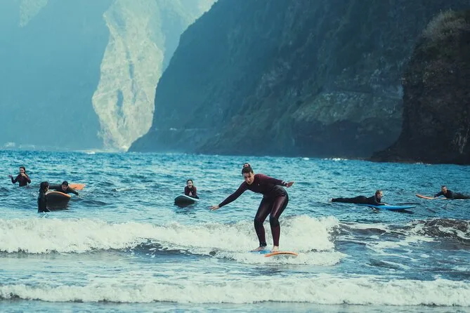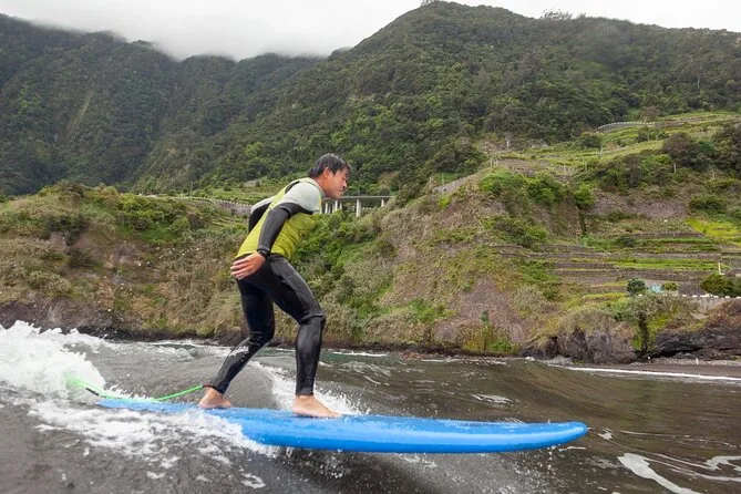 Sentirás la brisa atlántica mientras aprendes a surfear en las playas de la costa norte de Madeira con todo el equipo incluido. Calienta en la arena volcánica oscura, recibe consejos de instructores locales como Ruben y atrapa tu primera ola rodeado de acantilados impresionantes. Prepárate para reír, llevar salitre en el pelo y vivir pequeñas victorias que recordarás siempre.