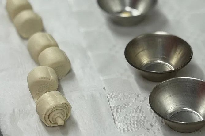 Hacer pastel de nata es más desordenado de lo que pensaba. La masa ya estaba preparada (Ana dijo que si no, lleva horas), pero estirarla y cortar esos círculos pequeños fue casi una especie de meditación. El relleno de crema — tibio, con huevo y dulce — se me pegaba en los dedos y hubo un momento en que todo quedó en silencio salvo el tintinear de las cucharas contra los boles de metal. Ana nos contó cómo estos pasteles nacieron en los conventos de Lisboa y, de alguna forma, se volvieron el snack favorito también en Porto. Nos sirvió copitas de vino de Oporto mientras esperábamos a que se doraran; sinceramente, ese primer sorbo supo diferente después de tanto mezclar y reír.