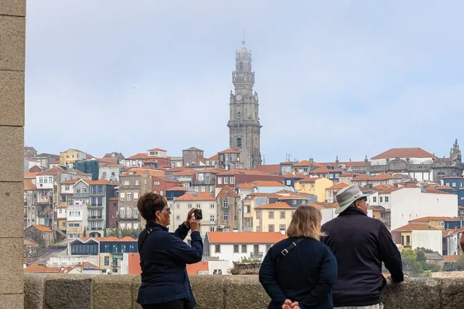 Tu día incluye un paseo guiado por el centro histórico de Porto con paradas en lugares emblemáticos como la estación de São Bento y la Torre de los Clérigos (visitas exteriores), traslado en bus a Vila Nova de Gaia para visitar una bodega tradicional de vino de Oporto con cata de tres vinos, además de un cupón para un tour a pie gratuito válido cualquier día después de la experiencia.