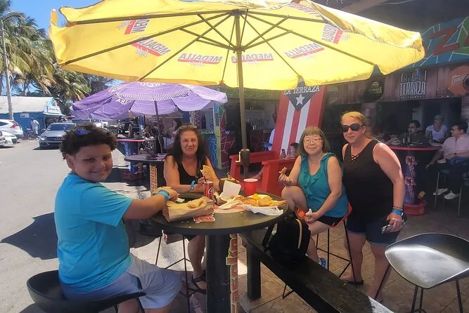 No esperaba que el aroma a masa frita me recibiera tan temprano en Piñones — se me quedó pegado en la camiseta, pero de la mejor manera. Nuestra guía Nat (que además es profesora, ¡una locura!) nos dio unas frituras calentitas. Quise preguntar qué llevaba, pero solo recibí una sonrisa del cocinero y un “pruébalo” — así que lo hice. Dedos grasosos, aire salado, música sonando detrás. Sentí que era el comienzo de algo auténtico, no un tour cualquiera.