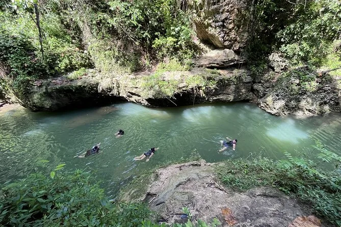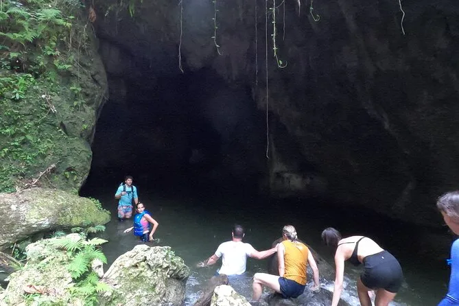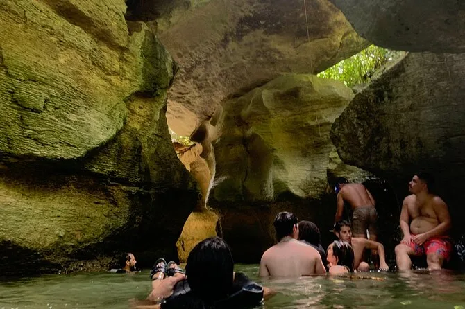 Recorre cuevas milenarias cerca de Charco Azul con un guía local, descubre grabados taínos a mano, nada en ríos subterráneos y relájate en piscinas turquesas rodeadas de acantilados y selva. Incluye transporte, snacks, chalecos salvavidas y todo el equipo para que solo te preocupes por explorar — o lanzarte desde los acantilados si te animas.