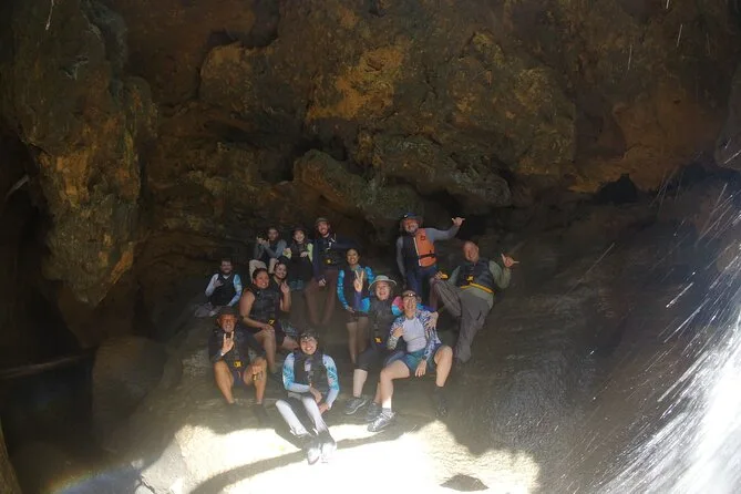 Tu día incluye transporte en vehículo con aire acondicionado, agua embotellada para mantenerte hidratado, todo el equipo de seguridad necesario como chalecos salvavidas, y snacks durante el recorrido. Un guía experto te acompaña en cada paso, desde las cuevas hasta las cascadas, para que no tengas que preocuparte por nada — solo trae zapatos cerrados y ganas de aventura.