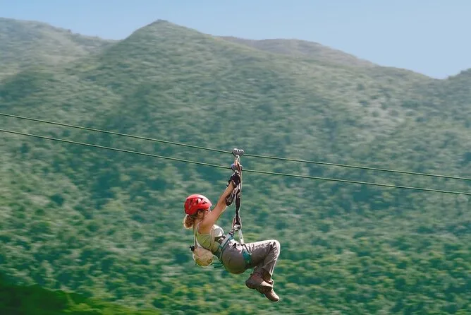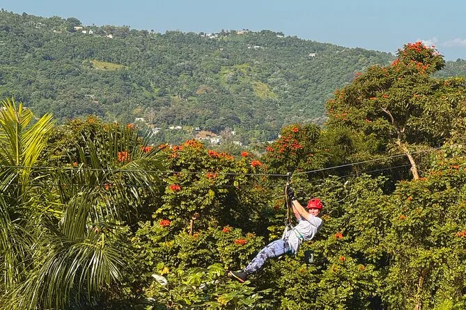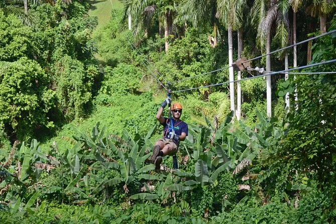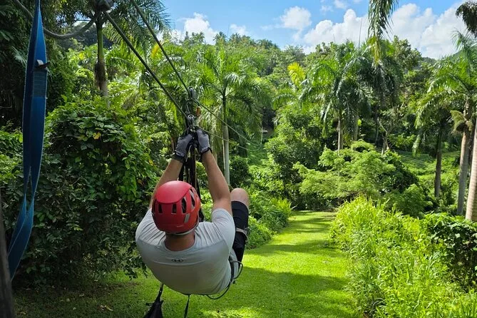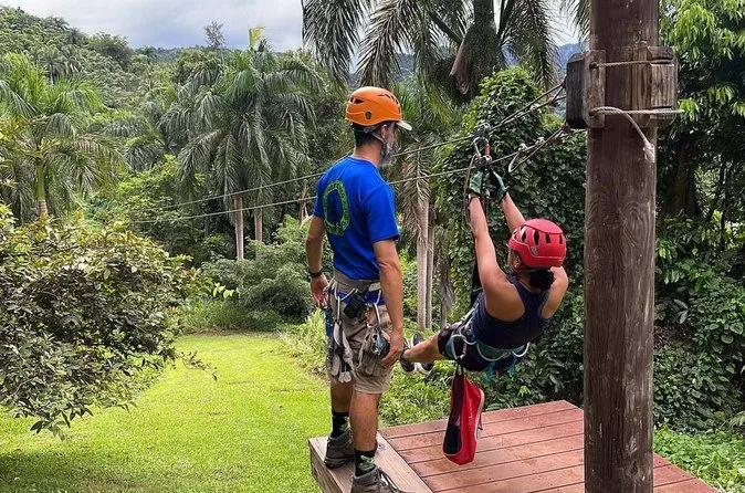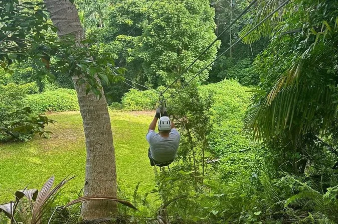 Deslízate sobre cinco tirolinas en la exuberante selva de Puerto Rico, cruza un puente colgante tambaleante, prueba el rappel con ayuda de guías locales y recorre senderos llenos de orquídeas. Con snacks en la base y todo el equipo incluido, esta excursión desde San Juan combina aventura y momentos de calma que te sorprenderán.