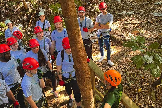 Tu experiencia incluye equipo profesional de seguridad como cascos y arneses, guía certificados bilingües con formación en primeros auxilios y manejo de riesgos, además de snacks en la base antes de seguir con más aventuras o relajarte bajo los árboles.