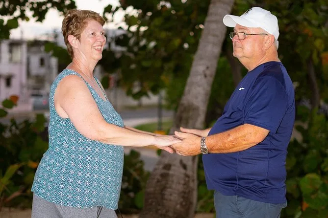 Tu tarde incluye una clase guiada de salsa justo en la arena de San Juan al atardecer, con música animada todo el tiempo—no necesitas experiencia y es totalmente accesible para sillas de ruedas y familias con cochecitos.