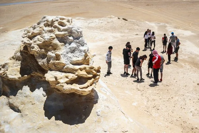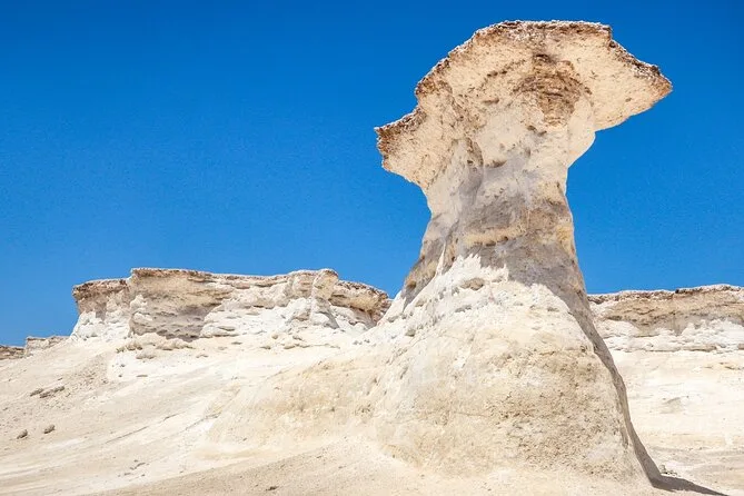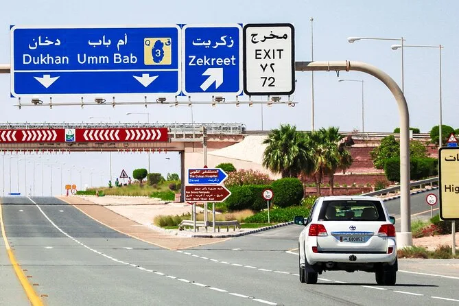 Tu día incluye transporte privado con recogida, agua embotellada y refrescos durante todo el recorrido, guía local experto, visitas al fuerte de Zekreet y la formación Umbrella Rock, además de tiempo para fotos en la famosa escultura de Richard Serra antes de regresar renovado.