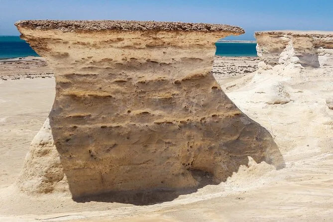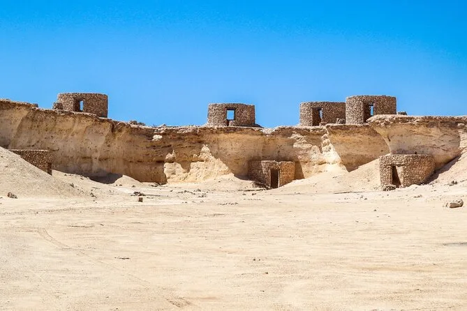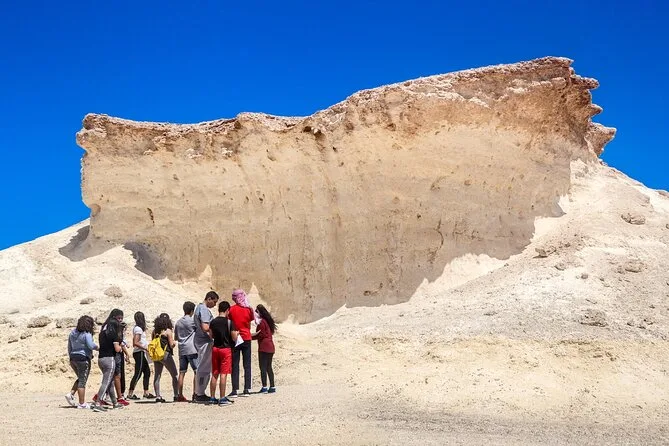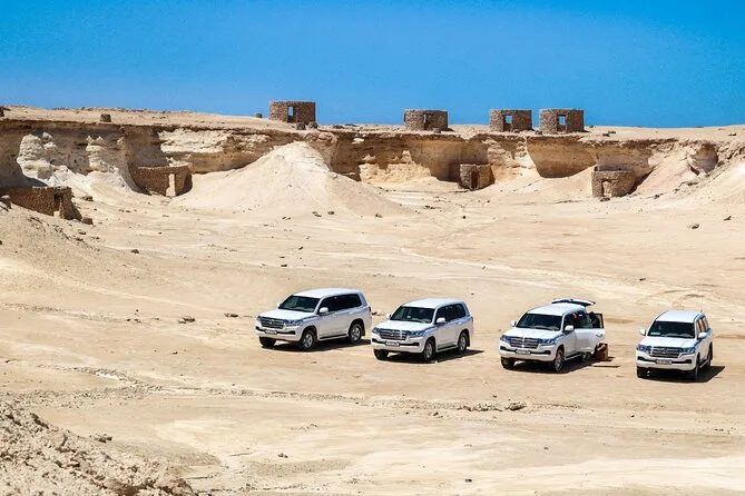 Prepárate para descubrir la costa salvaje de Qatar: desde explorar el antiguo fuerte de Zekreet, subir las colinas de piedra caliza en Umbrella Rock, hasta capturar fotos en la impresionante escultura de Richard Serra en el desierto. Con un guía local que se encarga del transporte y las historias, vivirás momentos de asombro y risas que recordarás mucho después de volver a Doha.