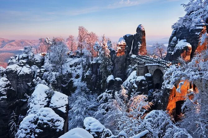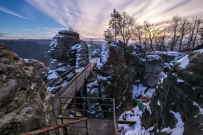 Caminarás por estrechos pasajes de arenisca en las Rocas de Tisa (sí, donde se filmó Narnia), cruzarás a Alemania para disfrutar vistas panorámicas desde el Puente Bastei y compartirás historias con tu guía local durante el almuerzo. Con recogida en hotel y todo organizado, es una excursión desde Praga que recordarás mucho tiempo después de volver a casa.