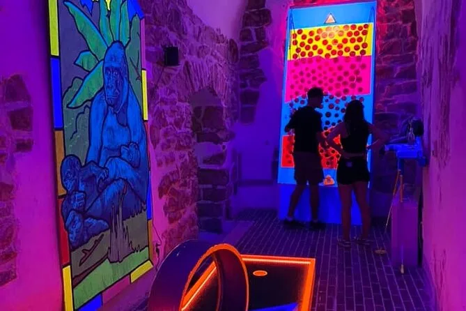 Tu entrada incluye acceso al mini golf de luz negra inspirado en los monumentos y leyendas de Praga, además de juegos extra como Jenga y Pukec. Hay WiFi disponible durante toda la visita para que te mantengas conectado mientras te diviertes en el centro.