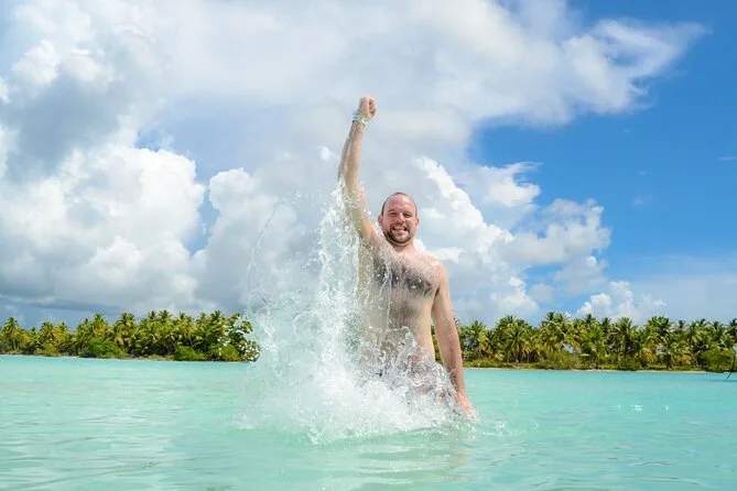 Tu día incluye transporte ida y vuelta desde tu hotel en Santo Domingo, paseos en lancha rápida y catamarán con un guía local que te acompaña todo el tiempo, entrada a la Piscina Natural (Laguna Azul) para nadar entre estrellas de mar y a la hermosa Isla Saona, donde disfrutarás un almuerzo buffet con bebidas antes de regresar en catamarán por la tarde.