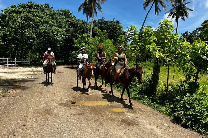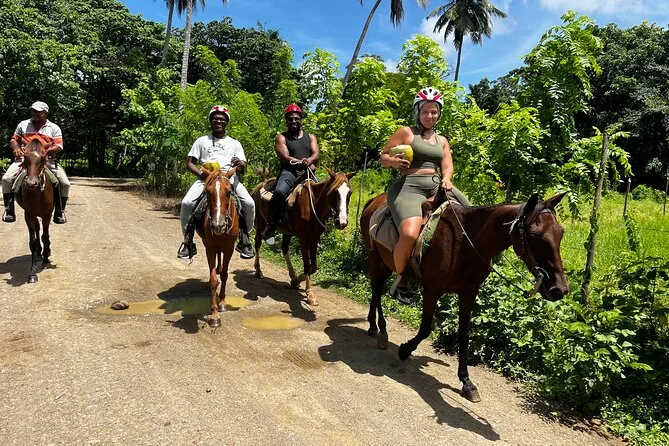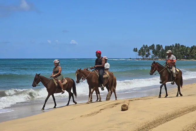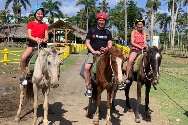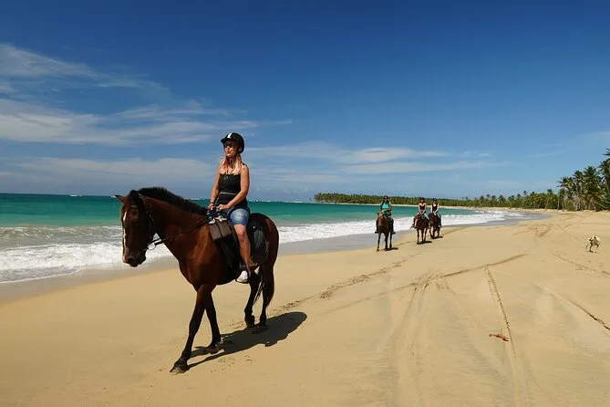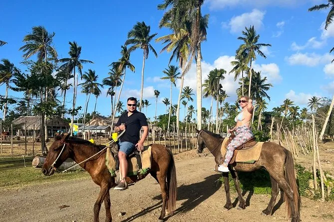 Tu día incluye transporte en vehículo con aire acondicionado desde tu hotel en Punta Cana o áreas cercanas; agua embotellada, refrescos y agua de coco fresca durante el recorrido; además de guía durante todo el paseo a caballo por senderos rurales hasta la playa Costa Esmeralda y regreso al rancho.