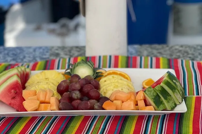Sí, ofrecen frutas tropicales frescas y snacks mientras navegas.