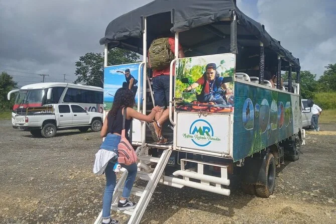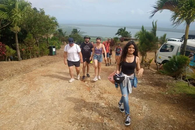 Tu día incluye recogida en Punta Cana en minibús con aire acondicionado, agua embotellada y refrescos durante el trayecto, un recorrido en 4x4 por Montaña Redonda con vistas panorámicas a la laguna Limón y la costa Esmeralda, tiempo para relajarte o tomar fotos en ambos puntos, además de un almuerzo casero en la montaña antes de bajar a explorar la tranquila playa Esmeralda y regresar.