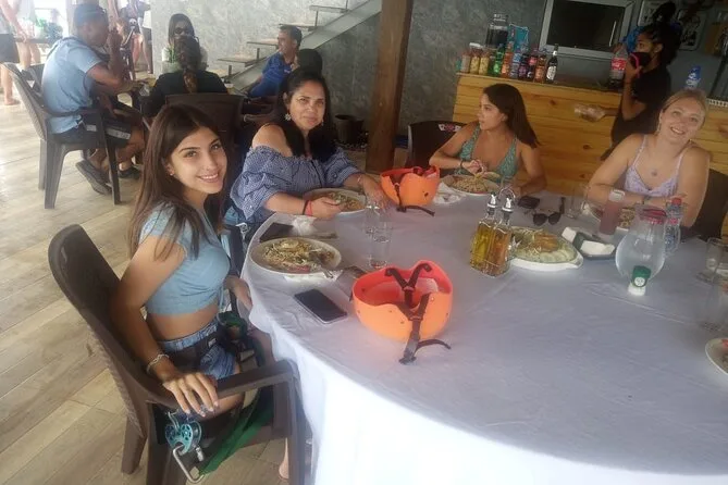 El almuerzo fue sencillo pero delicioso—pollo a la parrilla, arroz, plátanos, todo calentito de una cocina cercana. Comimos en mesas de madera con una vista que hacía que todo supiera mejor. Después bajamos hacia la playa Esmeralda. La arena era suave y clara bajo los pies; apenas había gente, solo algunos pescadores locales a lo lejos. Caminé por la orilla hasta que mis zapatos se llenaron de arena—y aún no logro sacarla toda de la mochila.