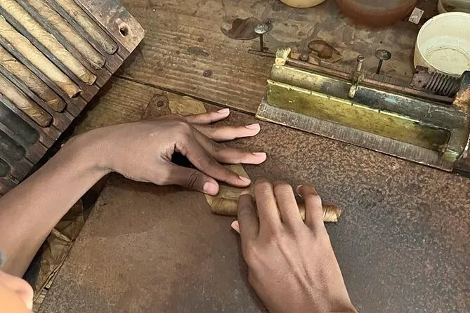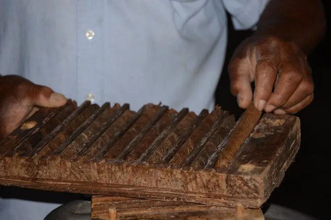 La siguiente parada fue una pequeña fábrica de puros escondida tras unas puertas pintadas. Los trabajadores se movían rápido pero sonreían cuando los mirábamos. Una mujer nos mostró cómo enrollar las hojas de tabaco, con las manos manchadas por años de práctica, y nos ofreció probar un puro acompañado de un chorrito de ron local. De nuevo en la carretera, pasamos por interminables filas de caña de azúcar meciéndose con la brisa. Nuestro guía paró para que intentáramos cortar un poco (el machete pesaba más de lo que parecía) y luego charlamos con gente de un batey cercano que nos saludaba al pasar.