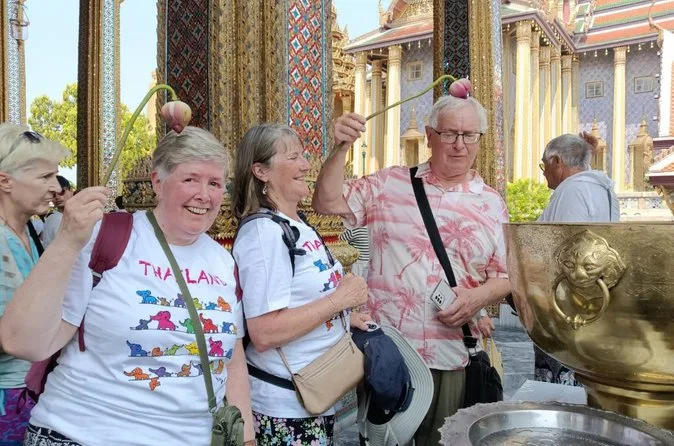 Probarás snacks callejeros en Chinatown, te perderás entre nubes de orquídeas en el Mercado de Flores Pak Khlong Talad, estarás bajo budas dorados y escucharás historias que solo los locales conocen. Con recogida en hotel y almuerzo incluidos, verás el corazón de Bangkok, no solo sus puntos turísticos.