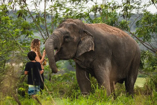 Vive una mañana junto a elefantes rescatados en la selva de Chiang Mai: dales de comer a mano, escucha sus historias con un guía local y disfruta un almuerzo relajado con tu grupo. Prepárate para zapatos embarrados, risas genuinas y momentos que recordarás siempre.