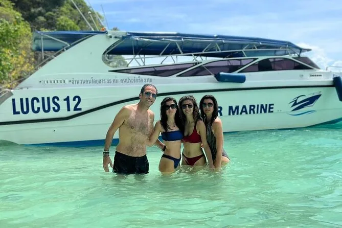 Tu día incluye transporte privado desde el muelle de Phuket tras el check-in en la oficina (con espacio para guardar tus cosas), agua embotellada, refrescos, snacks como fruta fresca, uso de equipo de snorkel en cada parada (incluyendo Maya Bay y Nui Beach) y baño a bordo para que solo te preocupes por nadar o relajarte entre islas.