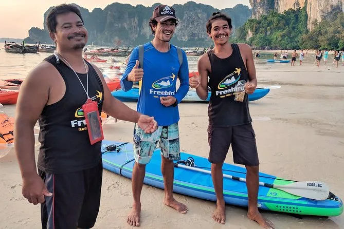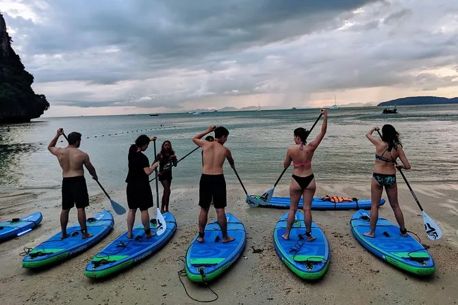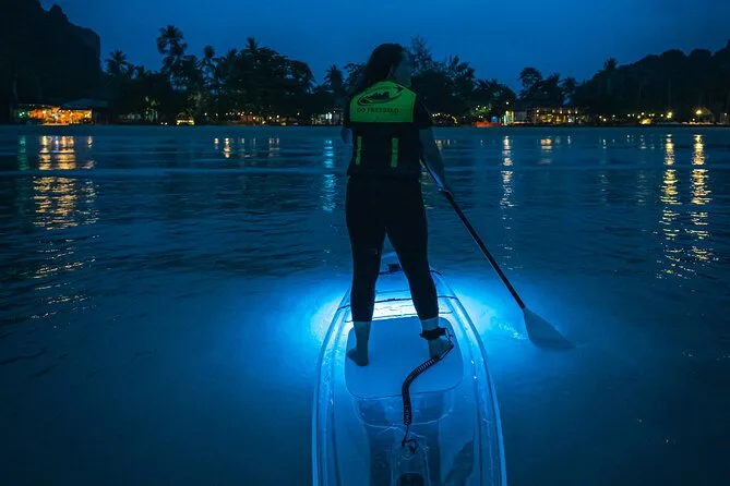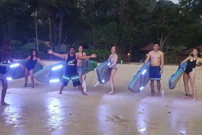 Tu noche incluye instrucción completa para principiantes en paddleboard, todo el equipo necesario como tabla y chaleco salvavidas, y la guía de un experto local que te llevará por la costa de Krabi antes de dejarte nadar entre plancton bioluminiscente bajo las estrellas.