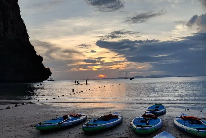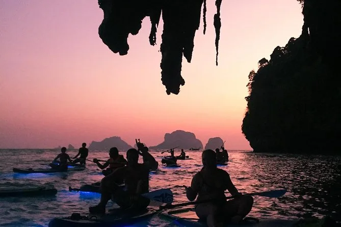 Remarás por la costa de Krabi mientras el atardecer se convierte en noche, guiado por un local que conoce cada rincón. Las tablas con luces LED revelan peces que se mueven bajo el agua antes de que te sumerjas para nadar entre plancton bioluminiscente — una experiencia que recordarás mucho después de secarte.