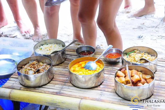 El tour visita la isla Tup, isla Poda, playa Phra Nang (con la Cueva de la Princesa), playa Railay y la isla Chicken para snorkel nocturno.