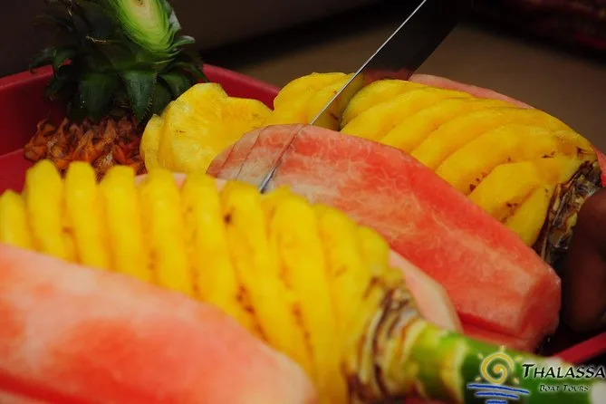 Tu día incluye traslado o recogida desde Ao Nang o zonas cercanas, todas las tarifas del parque nacional, almuerzo buffet en isla Poda (vegetariano o halal si se pide), frutas frescas y agua mineral durante todo el recorrido, guía local certificado en inglés, uso de equipo de snorkel con charla de seguridad—hasta el seguro está cubierto—y podrás hacer snorkel de día entre corales y un baño guiado de noche con plancton bioluminiscente antes de volver a tu hotel en Ao Nang.