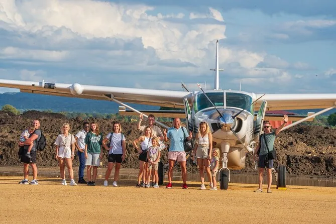 Tu día incluye vuelos ida y vuelta entre Zanzíbar y Mikumi, todas las entradas al parque, agua embotellada y refrescos disponibles, café o té si quieres, y un almuerzo caliente en plena naturaleza antes del vuelo de regreso por la tarde.