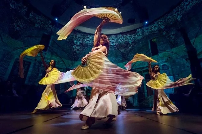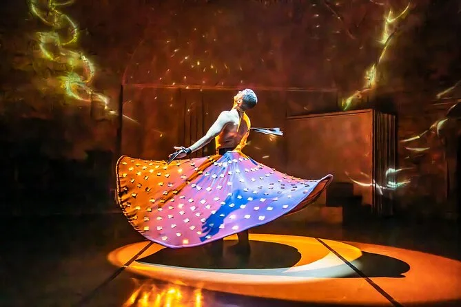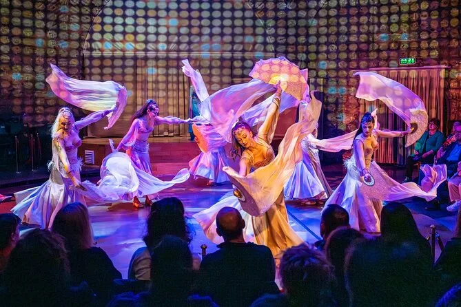 Vive una noche en el histórico Centro Cultural Hodjapasha de Estambul con bailes animados de Anatolia y los Balcanes, trajes giratorios y deslumbrantes danzas del vientre, todo acompañado de visuales inmersivos en 360 grados. Disfruta agua embotellada mientras exploras la exposición cultural antes de tomar tu asiento para un espectáculo que te quedará grabado.