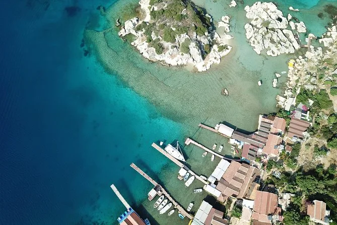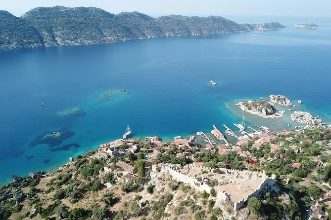 Visitarás la bahía İnönü, bahía Aquarium, ruinas de la ciudad sumergida de Kekova, pueblo y castillo de Simena, Üçağız con tumbas licias, Tersane Koyu y bahía Çamlık.