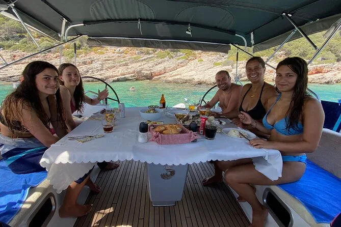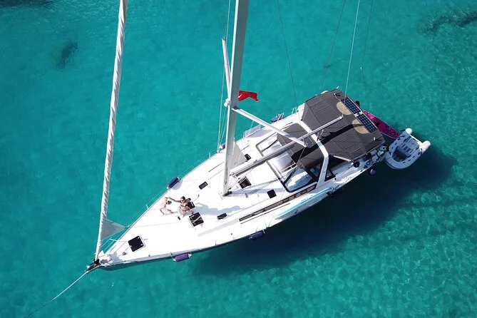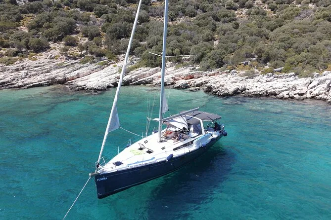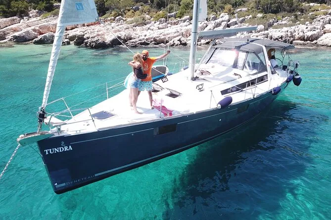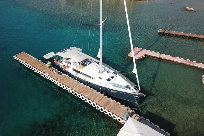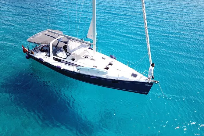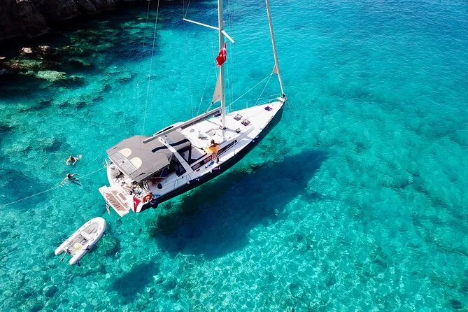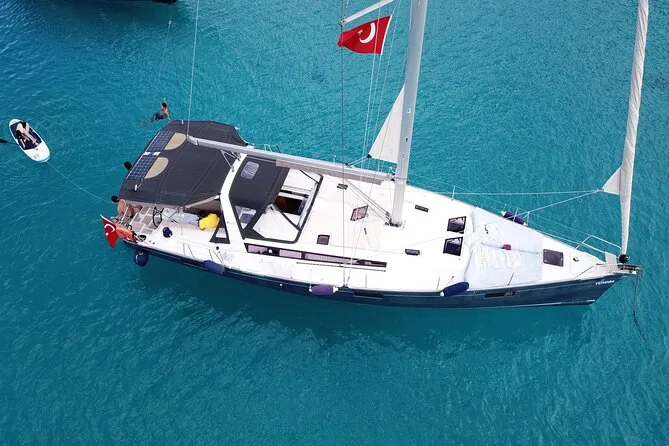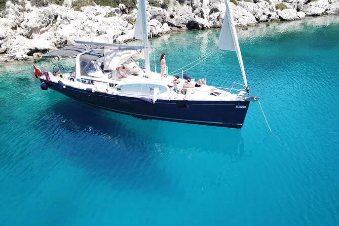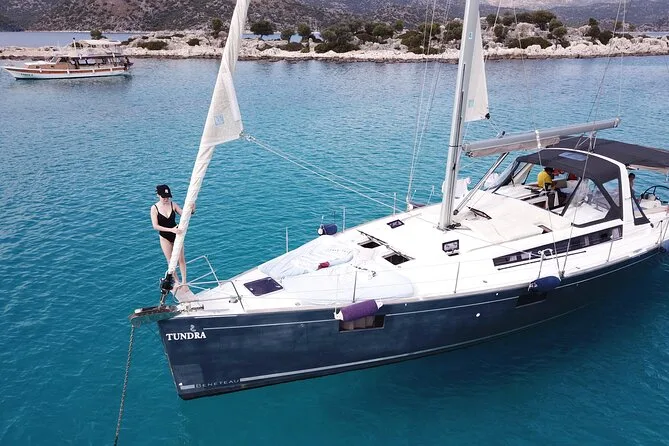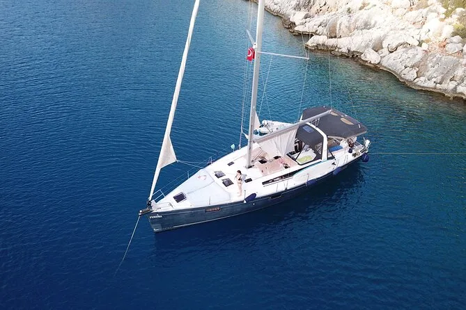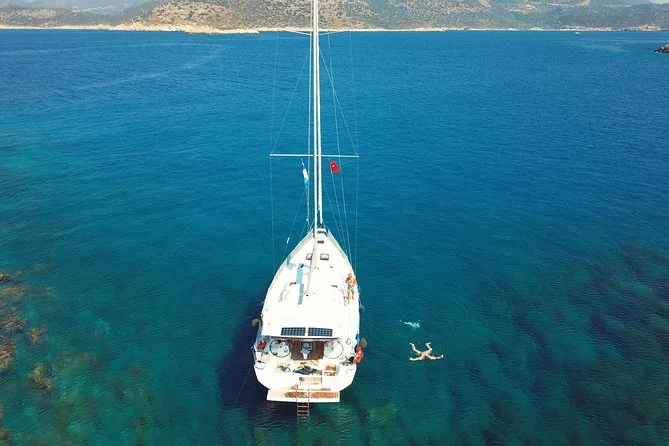 Tu día incluye el uso privado de un velero Beneteau Oceanis 48 con patrón y chef, todos los impuestos y tasas, almuerzo turco casero servido a bordo (con opciones vegetarianas si se requieren), té o café por la tarde cuando quieras, además del equipo de snorkel para cada parada de baño antes de volver a Kas por la tarde.