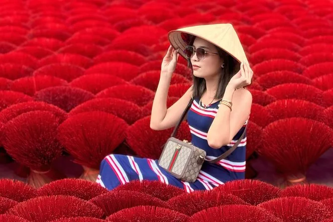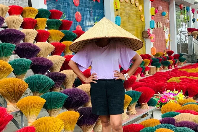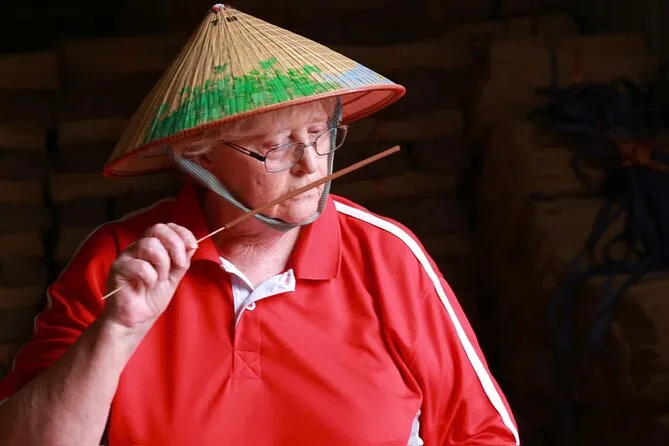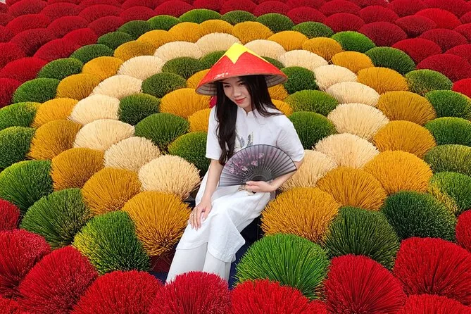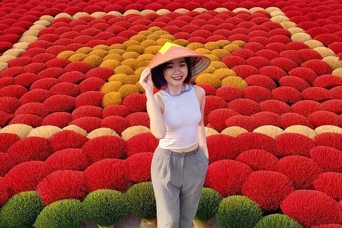 Recorre la aldea de incienso Quang Phu Cau con un guía local, prueba a hacer varitas de incienso coloridas y luego teje un sombrero cónico tradicional junto a artesanos en Chuong. Comparte un almuerzo casero con locales y llévate tu propio sombrero pintado como recuerdo, además de esos momentos únicos que no se pueden planear.
