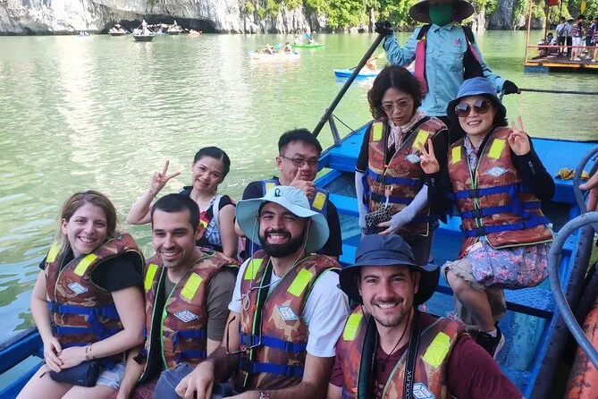 Puedes elegir entre kayak o paseo en bote de bambú en la Cueva Luon; ambos están incluidos en el ticket.