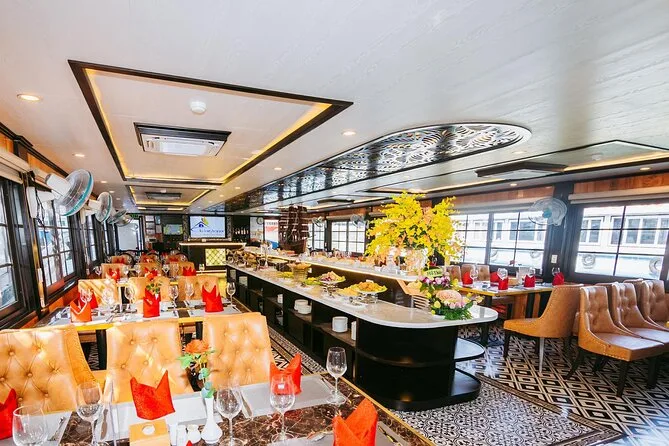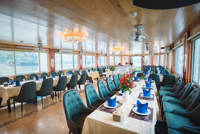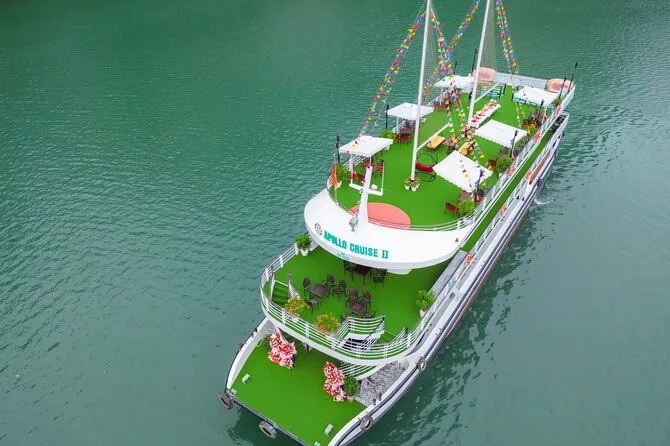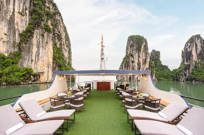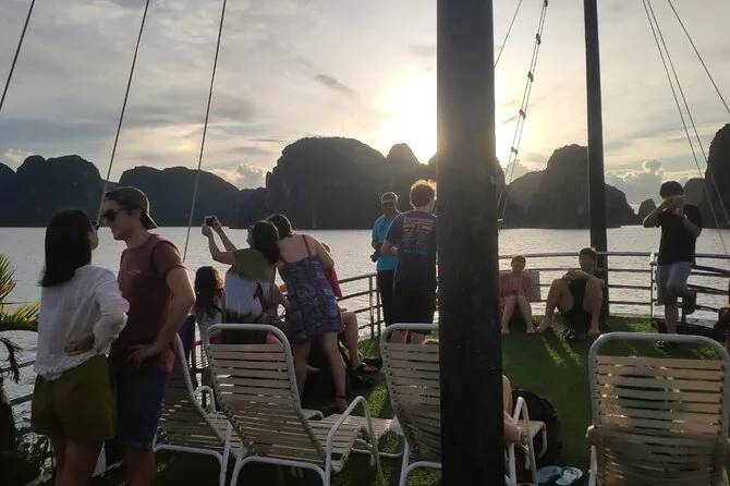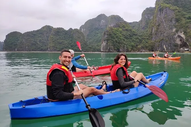 Visitarás la Cueva Sorpresa (Sung Sot), harás kayak o paseo en bote de bambú en la Cueva Luon, y pararás en la Isla Titop para nadar o hacer senderismo.