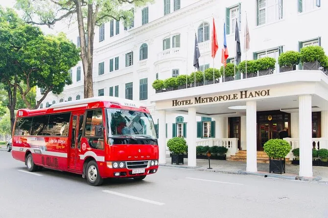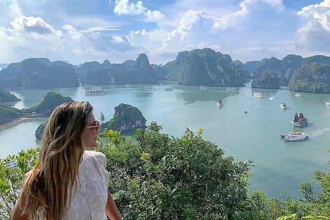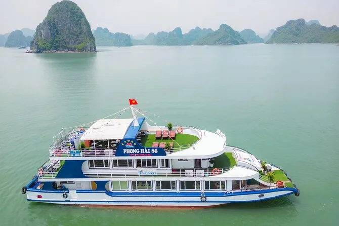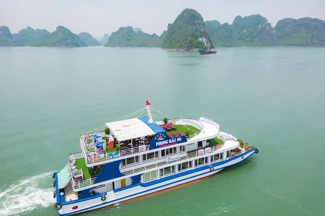 Tu día incluye recogida en hotel en Hanoi en bus con aire acondicionado, entradas a todos los sitios visitados en la Bahía de Halong como la Cueva Sorpresa y la Isla Titop, agua embotellada durante todo el recorrido, un guía en inglés que comparte historias en el camino, y un almuerzo completo vietnamita servido a bordo antes de regresar al hotel por la tarde.