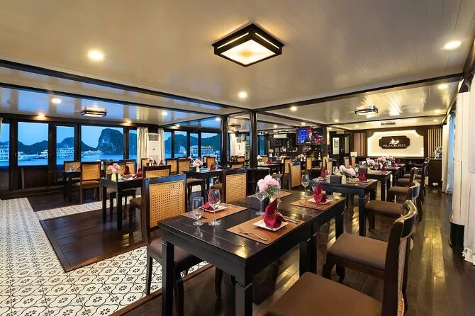 Tu viaje incluye recogida y regreso en autobús con aire acondicionado desde el Barrio Antiguo de Hanoi, todas las entradas a las atracciones de la Bahía de Halong como la Cueva de la Sorpresa y la isla Titov, equipo de kayak, todas las comidas principales con platos de fusión vietnamita a bordo, cabina privada con balcón para tu noche en Milalux Cruises, además de actividades como sesiones de Tai Chi al amanecer, clases de cocina, equipo para pesca de calamares por la noche y mucho tiempo libre para relajarte en cubierta o unirte al karaoke antes de volver cómodamente a Hanoi.