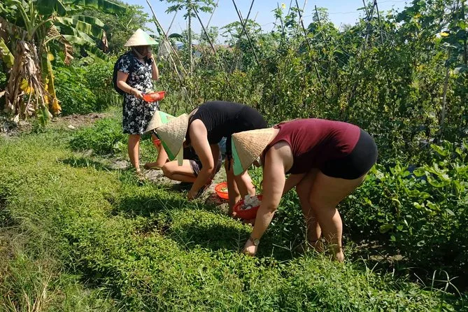 Antes de que pudiera ubicar mi bolso, alguien me entregó un sombrero cónico. El aire olía a fresco — como hierbas mojadas y tierra tras la lluvia — y nuestra guía, la señora Lan, ya nos llamaba junto a hileras de menta y algo que ella llamaba “cilantro vietnamita”. Intenté repetirlo en vietnamita. Ella se rió con cariño, me corrigió y nos mostró cómo pellizcar las hojas justo como se debe. Por todas partes había libélulas. No esperaba ensuciarme tan pronto, pero la verdad es que se sentía bien.