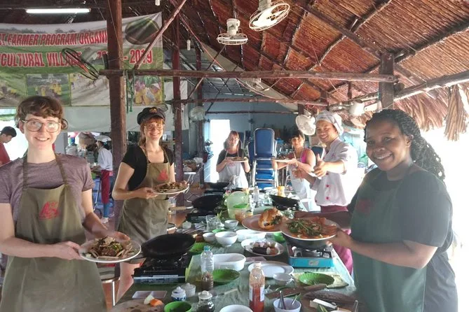 Tu día incluye recogida y regreso en vehículo con aire acondicionado, todas las actividades en la granja orgánica con guía local, agua embotellada durante todo el recorrido, preparación práctica de cuatro platos vietnamitas con ingredientes frescos, almuerzo juntos tras cocinar (con opciones vegetarianas), además de tarjetas con recetas y un certificado para llevar antes de regresar a Saigón.