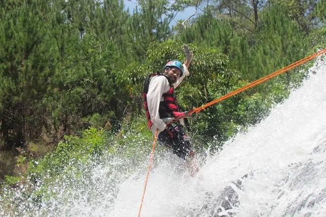 Tu día incluye recogida y regreso al hotel en el centro de Dalat, todos los permisos y equipo de rápel de alta calidad (casco, arneses, mosquetones), trajes de neopreno si hace frío, seguro de viaje durante toda la aventura y un picnic energizante en el camino —solo trae ganas (y un poco de valentía).