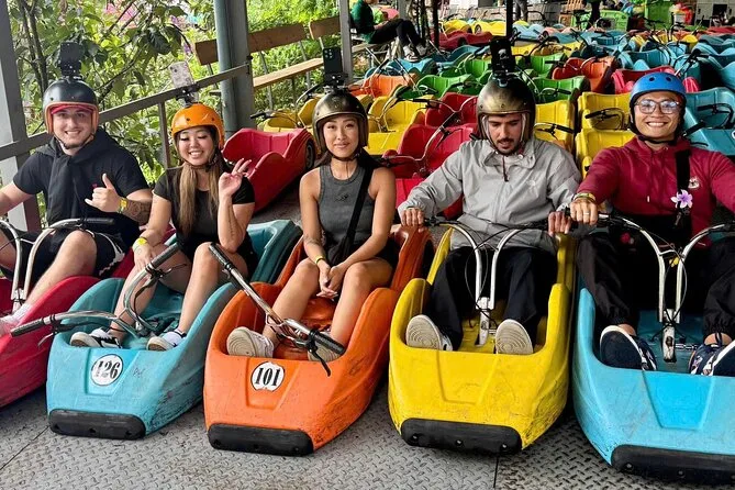 Puedes probar el tobogán aéreo, volver a hacer go kart, deslizarte por toboganes arcoíris y tomar fotos en zonas temáticas.