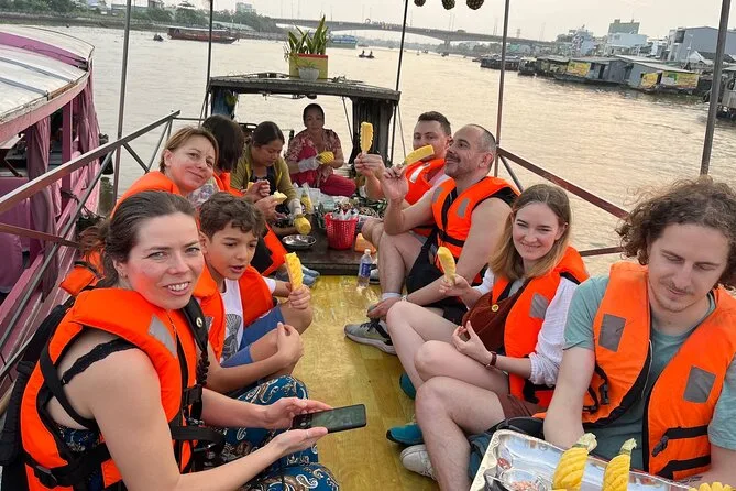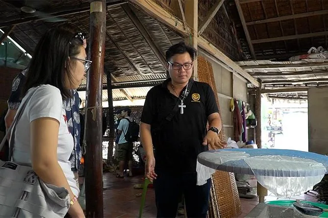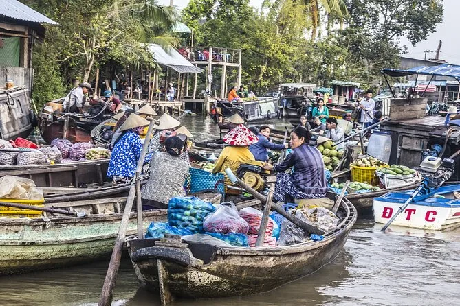 Tus dos días incluyen traslados ida y vuelta en van o bus con aire acondicionado desde Ho Chi Minh, con recogida en la mayoría de hoteles céntricos. Todos los paseos en barco por el Delta del Mekong, visitas a la pagoda Vinh Trang, desayuno en el Mercado Flotante Cai Rang a bordo, tour por fábrica de fideos de arroz, clase práctica de bánh xèo en casa antigua, dos almuerzos locales (con opciones veganas), una noche en hotel 3 estrellas en Can Tho con desayuno incluido — todo guiado por un experto local de habla inglesa que mantiene el ritmo sin prisas.